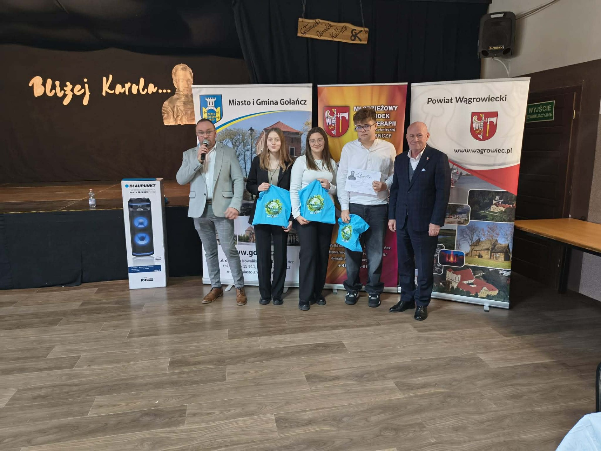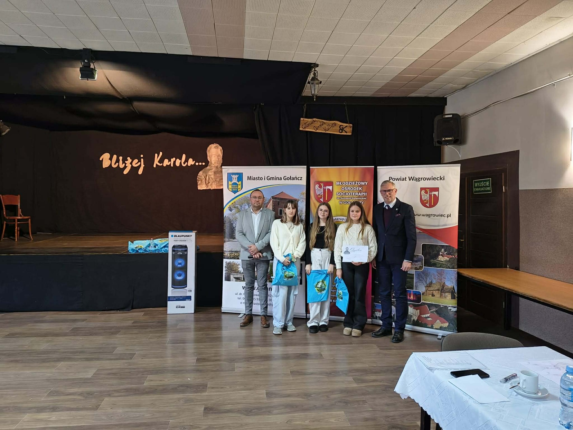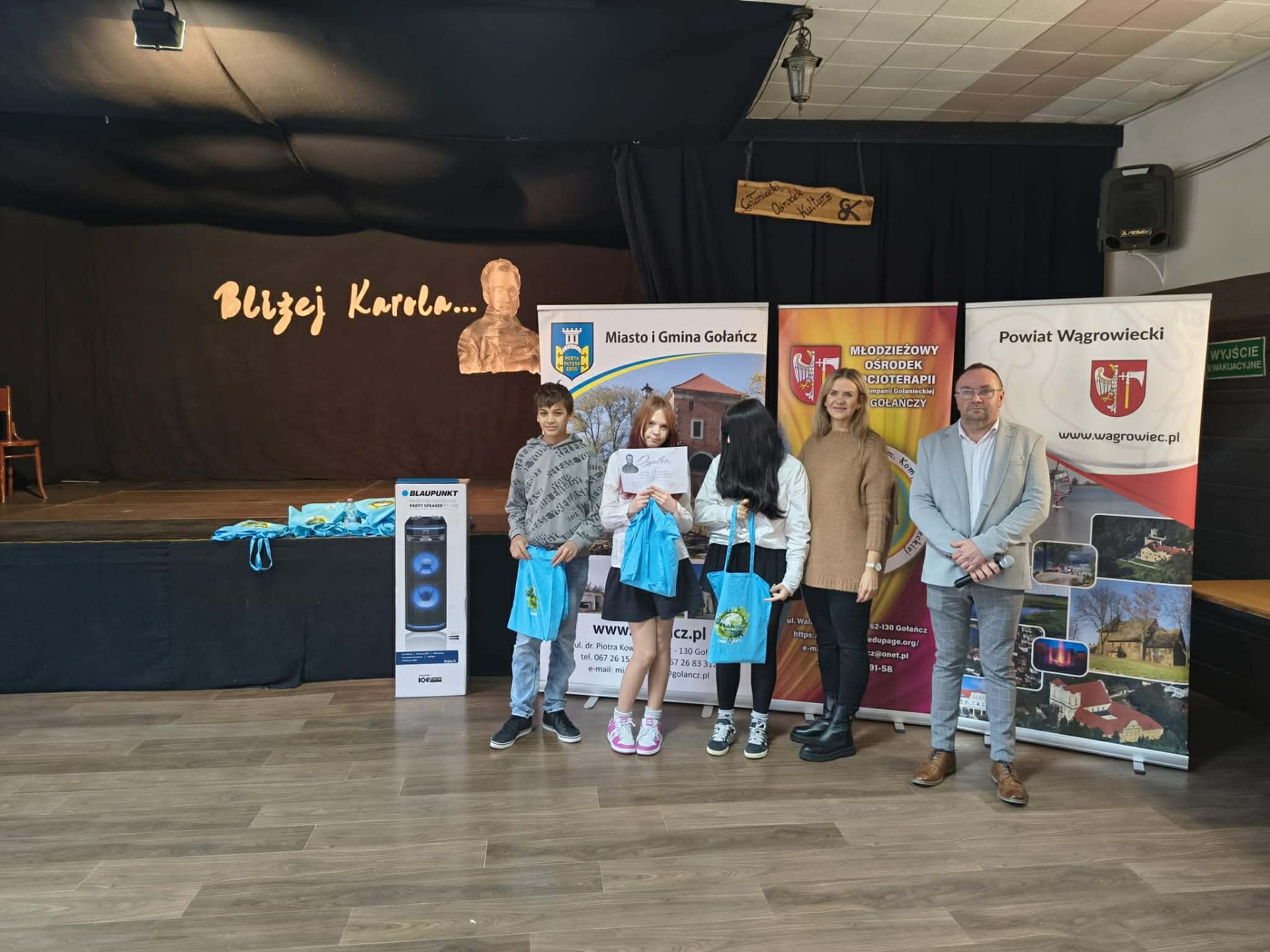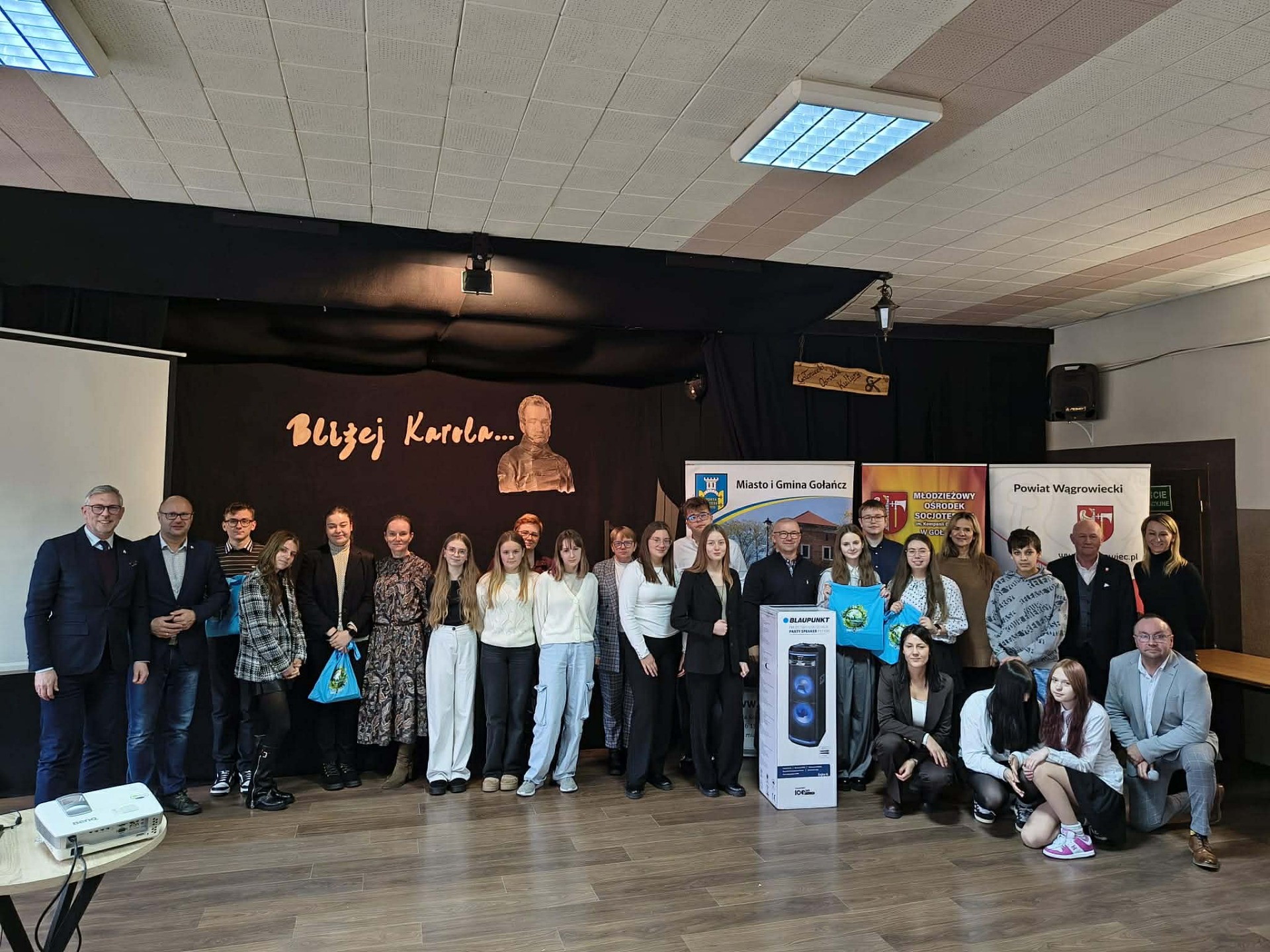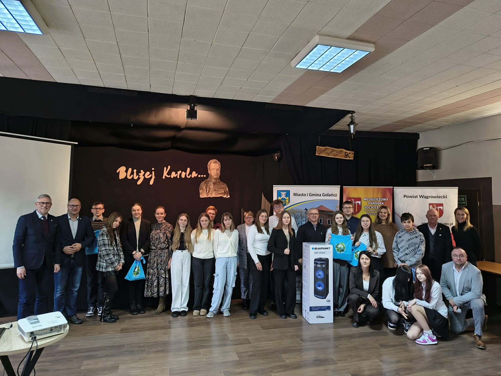 W dniu 26 listopada br. w sali Stodoła w Gołańczy odbył sie VIII Gminny Test Wiedzy Historycznej. Od pierwszej edycji przedsięwzięcie to odbywa sie pod honorowym patronatem Starosty Powiatu Wągrowieckiego Tomasz Kranca oraz Burmistrza Miasta i Gminy Gołańcz Roberta Torza. Organizatorem jest Młodzieżowy Ośrodek Socjoterapii im. Kompani Gołanieckiej w Gołańczy. Tematem w tym roku był Karol Libelt jego życie i działalność głównie na terenie naszego powiatu. Tutaj chciałbym przypomnieć, że rok 2025 w Gołańczy jest ogłoszony rokiem libeltowskim z powodu jego 150-tej rocznicy śmierci. Do testu przystąpili uczniowie wszystkich szkół podstawowych z terenu gminy Gołańcz. Po zaciętej rywalizacji VIII Gminny Test Wiedzy Historycznej wygrała Szkoła Podstawowa Smogulec. II miejsce Szkoła Podstawowa Panigródz, III miejsce Szkoła Podstawowa Morakowo, IV miejsce Szkoła Podstawowa Gołańcz, V miejsce Młodzieżowy Ośrodek Socjoterapii w Gołańczy. Nagrody dla uczniów ufundował Młodzieżowy Ośrodek Socjoterapii im. Kompani Gołanieckiej w Gołańczy oraz Burmistrz Miasta i Gminy Gołańcz . Nagrodę główną sprzęt Audio dla Szkoły ufundowali lokalni sponsorzy Ewa Pisarek, Eligiusz Wachowiak, Sławomir Królczyk, Marcin Tomaszewski, Julia Leszczyńska oraz Małgorzata Chołody. Za wsparcie bardzo dziękujemy w imieniu młodzieży. Podczas Testu nie zabrakło również honorowych gości Dyrektor MOS Agnieszka Winiecka, która uroczyście otworzyła VIII Gminny Test Wiedzy Historycznej, Wicestarosta Jerzy Springer, Burmistrz Miasta i Gminy Gołańcz Robert Torz, Wiceburmistrz Sławomir Maciaszek oraz Wicedyrektor MOS Sylwia Polcyn. Którym prowadzący dziękują za przybycie.