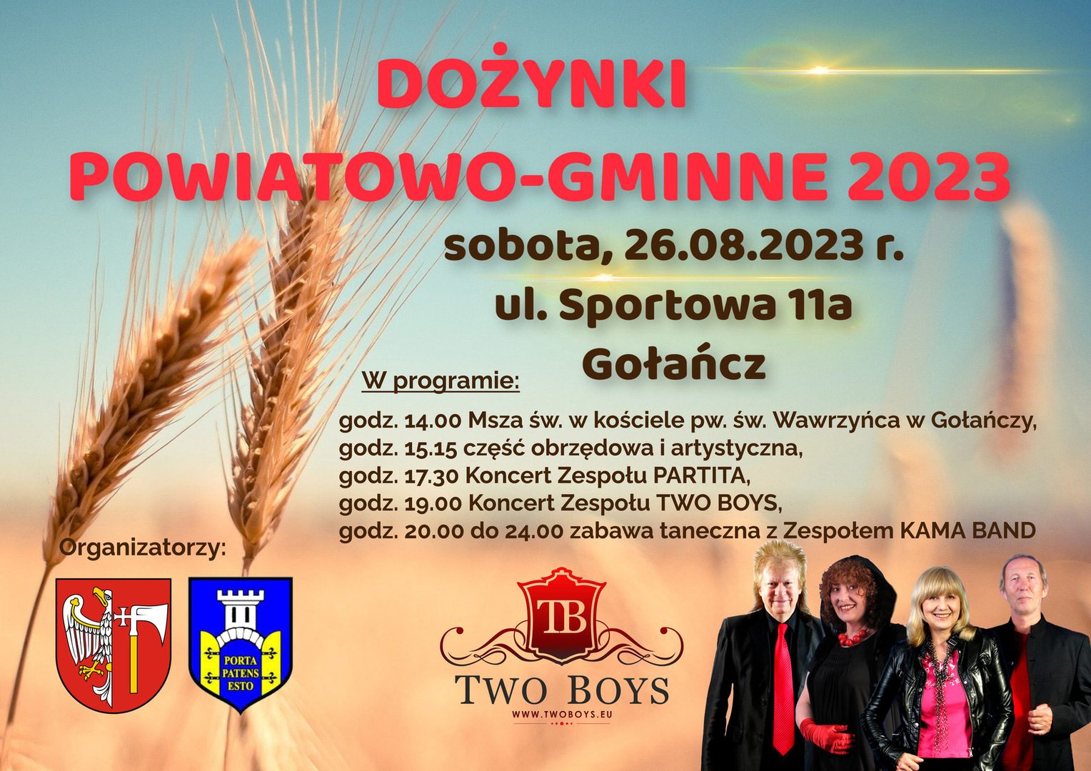 Burmistrz Miasta i Gminy Gołańcz serdecznie zaprasza na Dożynki Powiatowo-Gminne,które odbędą się w sobotę 26 sierpnia 2023 r. na stadionie miejskim w Gołańczy.