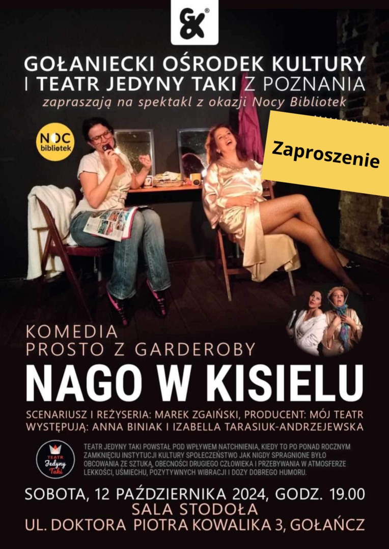 oraz nieoczekiwanych zwrotów akcji spektakl pióra Marka Zgaińskiego o kulisach środowiska aktorskiego. Sztuka daje asumpt do słodko – gorzkiej refleksji nad kondycją profesji aktora.